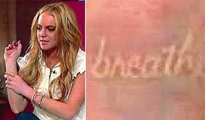 Lindsay has some pretty cool tats. i really like her white "breathe" tat on her wrist.